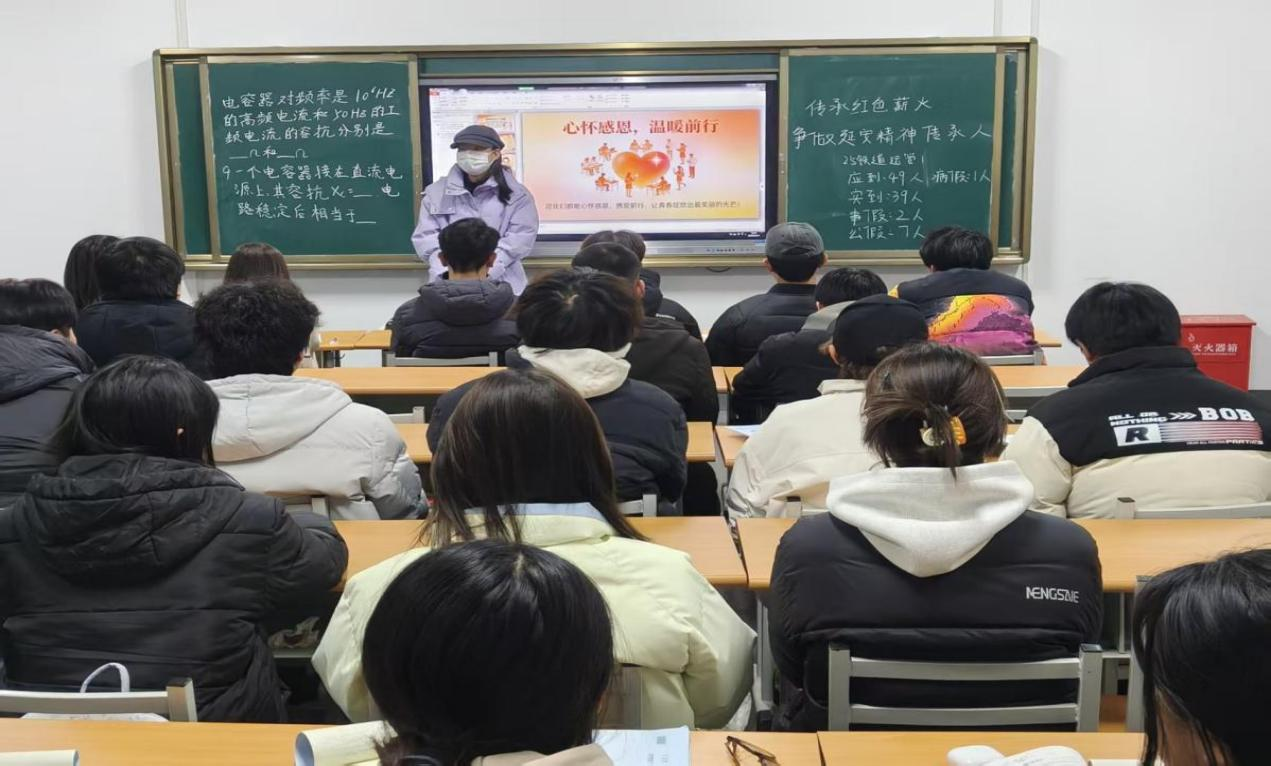 随后,班会通过播放暖心视频与案例,让同学们深刻体会身边温暖与关怀,明白感恩不仅是情感表达,更是前行的精神动力;在互动环节中,同学们主动分享成长故事,有人诉说父母支持求学的点滴感动,有人感恩老师在专业实训中耐心指导的恩情,有人致谢同窗在课业难题、生活困境中伸出的援手,朴素的话语满含真挚情感。